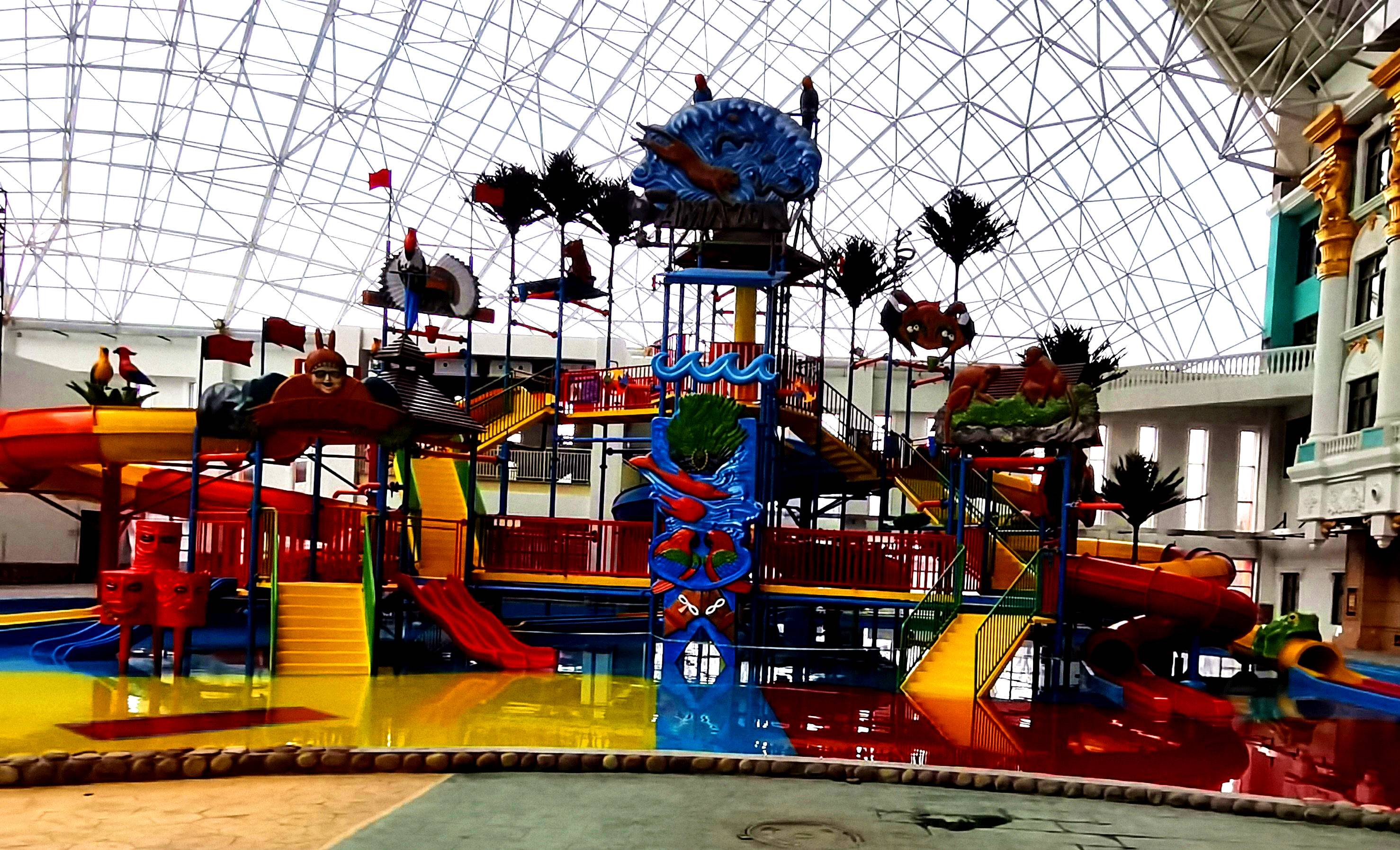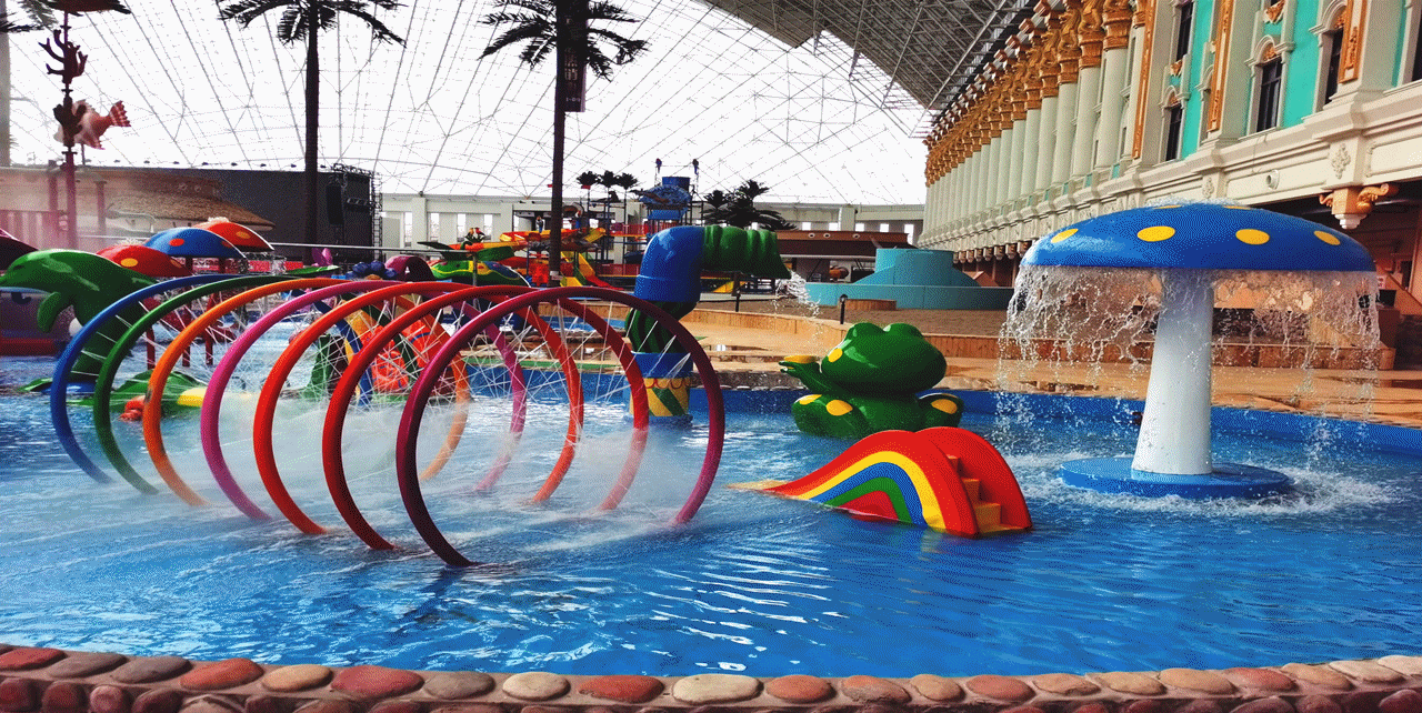 水樂園項目有海浪池、漂流河、亞馬遜風格水寨、超級大喇叭滑梯、大滑板滑梯、高速快速梯、彩虹競賽滑梯、大回環滑梯、兒童戲水設備、室內外溫泉等十多種水上游玩項目。