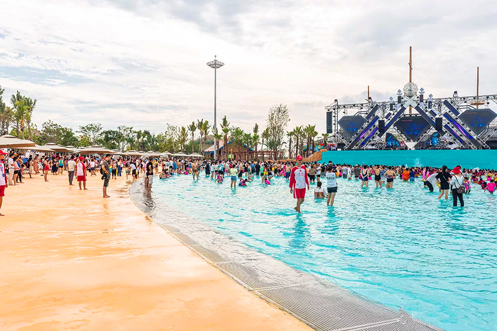 北海銀基水世界是北海銀基國際旅游度假區(qū)首批四個文旅項目之一,打破傳統(tǒng)水公園千篇一律以“水上游樂設(shè)備”為主的模式,把所有滑行的設(shè)備借助山體進行主題包裝,并通過對游樂設(shè)備、景觀環(huán)境、餐飲建筑的沉浸式組合,給大家?guī)砩砼R其境的體驗。項目包括豐富多彩的親子戲水區(qū)及充滿刺激的漂流河等75個游樂項目,這是極具創(chuàng)意、設(shè)計特色的大型水樂園項目。