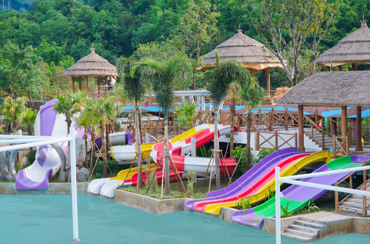 森林海嬉水樂園,擁有30余套游樂設施(由廣東大浪水上樂園設備有限公司提供全套設備供應及安裝服務),是一個室內外結合的復合型大型水上樂園;包括西區室內館和東區室外樂園兩大主要區域。其中室內館全季恒溫,內含造浪池,穿內外貫通循環的巨洪峽、親子滑梯組合等奇趣的水上樂園設備;室外水樂園區域是頗具特色的原始樹屋群在森林隱現、超大型探險水寨倒水桶宛如銀河傾瀉、兒童組合滑梯群隨處可見......